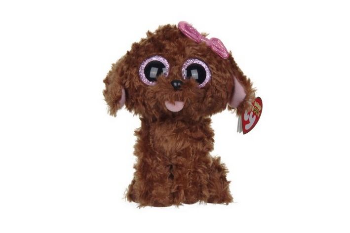 Plyš očka střední pejsek hnědý s mašličkou 16 cm.