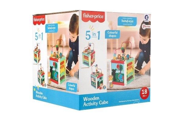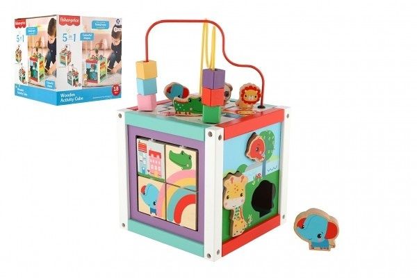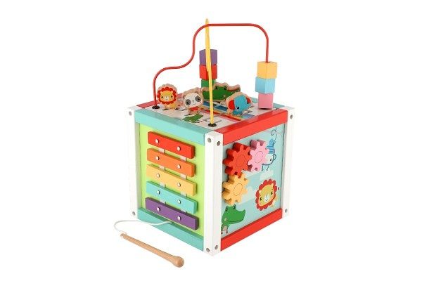Edukační kostka 5v1 dřevo labyrint v krabici 21x21x21cm 18m+