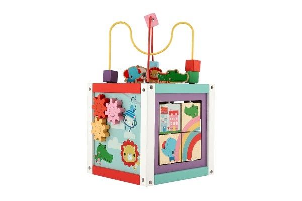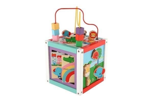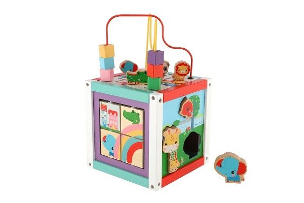 Na této kostce s aktivitami 5v1 je toho hodně k objevování a vaše děťátko zabaví na celé hodiny. Odnímatelný vršek obsahuje korálkové bludiště a štěrbinové puzzle. Pomozte lvíčkovi, pandě, krokodýlovi a slonovi pohybovat se po hrací ploše. K dispozici jsou také další možnosti přehrávání, jako je vytváření hudby na xylofonu nebo hádanky a oznávání tvarů. Různé aktivity pomáhají podporovat učení a koordinační dovednosti při hře a zábavě.