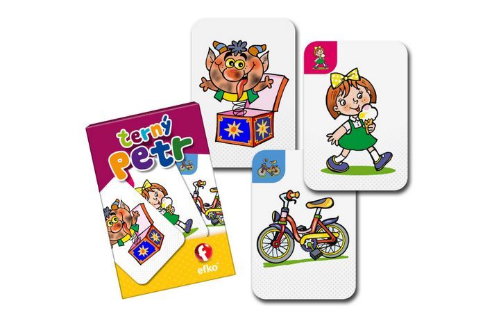 Efko Baby Černý Petr Dětské hrací karty Černý Petr v papírové krabičce. Hra pro tři a více hráčů se skládá z 31 karet a je rozdělena do 15 dvojic, z nichž každá má současně stejný znak i barvu. Jediná karta nemá označení. Je to ČERNÝ PETR. A jak se Černý Petr hraje? Rozdají se všechny listy a kdo získá dvojice se stejným označením, odloží je hned stranou. Začíná hráč po levici rozdávajícího tak, že si od něj vytáhne libovolnou kartu. Hra pokračuje dokola stejným způsobem. Hráči po levici táhnou list od souseda po pravici a každou shodnou dvojici odloží. Vyhrává ten, kdo se zbaví všech karet jako první. Hráč, kterému zůstal v ruce Černý Petr, prohrál. Obsah balení: 31 hracích karet. Věk: 3+ Počet hráčů: 3+ Délka hry: cca 20 min Počet karet: 31 Rozměr balení: 12 x 12 x 1,5 cm