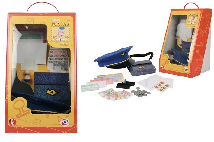 Zahraj si na pošťáka! Budeš doručovat důležitá psaníčka nebo objevíš kouzlo práce za přepážkou? K dispozici máš razítko, složenky i peníze. Nebo nasaď pošťáckou čepici a hurá do ulic! Vyrobeno v ČR