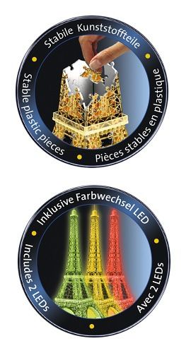 3D model Eiffelovy věže "Night Edition" je radost skládat. Můžete skládat dle předlohy nebo čísel, které jsou součástí každého z 216 platových dílků. Výsledkem je úžasný model, který složíte bez potřeby lepení! Svítí, mění barvy. Obsah balení. 216 dílků puzzle s čísly + příslušenství + návod. Rozměry složeného modelu 47x14x7cm.