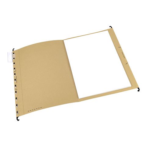 Hnědé, otevírání shora, S exkluzivním držákem štítků Elba komfort. Složka pojme až 250 listů papíru, karton 240 g/m2, certifikát Blue Angel
