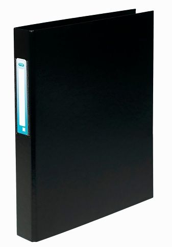 Na výšku, 4-kroužkový, mechanika typu D 30 mm ( hřbet 50 mm), vyrobený z recyklovaného kartonu potaženého vrstvou odolného PVC, vyměnitelný hřbetní štítek. Černý