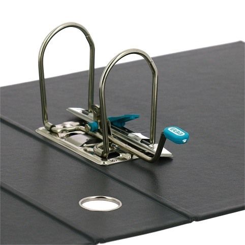 Vnitřní polep v barvě pořadače, PP, hřbetní štítek, celobarevný, páková mechanika, prstokroužek, radokroužek, kapacita 570 listů