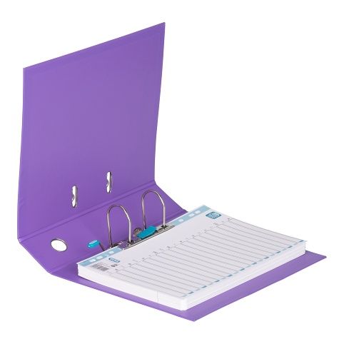 Vnitřní polep v barvě pořadače, PP, hřbetní štítek, celobarevný, páková mechanika, prstokroužek, radokroužek, kapacita 570 listů