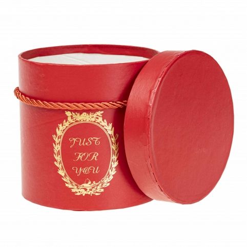 Elegantní kulatá dárková krabička "Flower Box", v zářivě červeném provedení. Pevná konstrukce z kvalitního papíru, stylový detail zlaté potisknuté ozdoby. Krabička je ideální jako luxusní balení pro malé dárky, květiny nebo sladkosti.