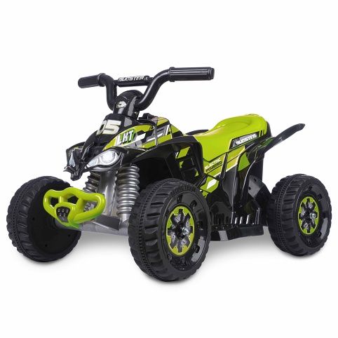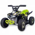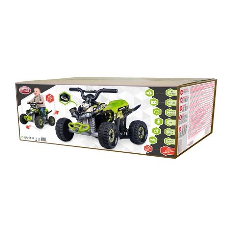 Elektrická čtyřkolka. Rozměry 46x72x46 cm. Jen zelená barva. Baterie 7. 4V (15-18W, 3 Ah). Nosnost 30 kg. Rychlost 2,4 km/h.