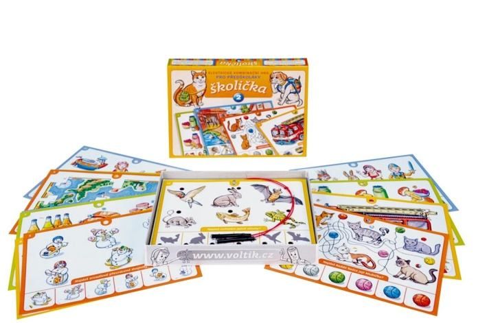 Elektrická výuková hra pro děti od 4 let. Obsahuje 16 listů s mnoha obrázky, mezi nimiž děti hledají souvislosti. Správnost odpovědi signalizuje elektronický zkoušecí obvod rozsvícením zeleného světýlka. Hra učí děti všímat si vztahů a logických souvislostí mezi obrázky, porovnávat je a správně je k sobě přiřazovat. Hra je pokračováním oblíbené Školičky, kterou již řadu let vyrábíme.