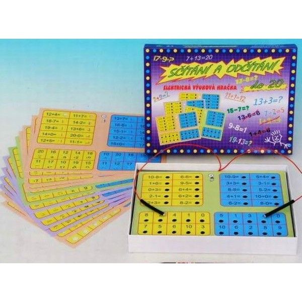 Sčítání a odčítání do 20 - je elektrická výuková hračka určená dětem od 6 let. Obsahuje 320 příkladů na sčítání a odčítání do 20 na 16 výměnných listech.