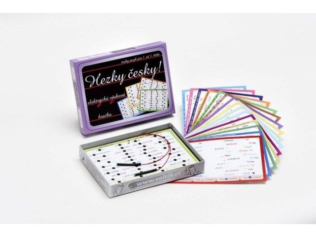 Elektrická výuková hračka k osvojení základních pravidel českého pravopisu vyučovaných v 1. až 3. třídě základní školy. Na 16-ti listech je natištěno 640 pečlivě vybraných slov, do kterých děti doplňují chybějící písmenka. Ve spodní části každého listu jsou uvedeny možnosti odpovědí. Jednotlivé listy s úlohami jsou v souladu s učebnicemi pro 1. až 3. třídu základní školy. Hra procvičuje učivo: - určování počtu slabik ve slově - slova nadřazená, podřazená a souřadná - dvojhlásky au, ou a používání ů,ú - psaní y, ý, i, í po tvrdých a měkkých souhláskách - používání b/p, d/t, z/s, v/f, h/ch, ž/š - používání dě, tě, ně, mě, bě, pě, vě - psaní y, ý, i, í po obojetných souhláskách s ohledem na vyjmenovaná slova Rozměry: 225x165x35 mm