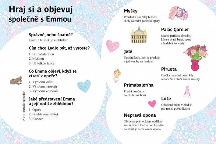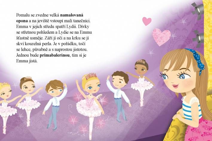Jednoho dne vezme tatínek Emmu do práce. Je elektrikář a musí do taneční školy Národní pařížské opery, kde studují budoucí tanečnice a tanečníci zvaní myšky. Emma se tu seznámí s myškou Lydií. Po nějakém čase navštíví jejich generální zkoušku, ale Lydie na ní chybí. Vyvrkla si kotník a hrozí, že nebude vystupovat! Naštěstí Emma najde tajemnou černou perlu… Pošle ji Lydii poštou, a když pak navštíví slavnostní představení myšek, Lydie září v jejich středu. Na krku se jí skví kouzelná perla.