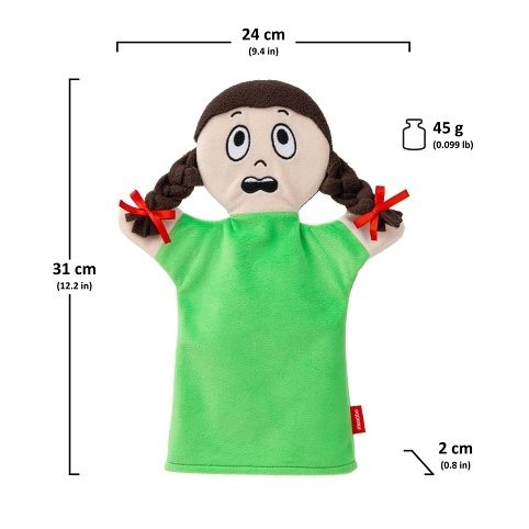 Textilní maňásek představující emoci strach, vhodný pro psychologické poradny, speciální pedagogy, učitele ve školkách a dětských skupinách a také pro domácí hraní. Navrženo ve spolupráci s dětskou psycholožkou Mgr. Bronislavou Pilarčíkovou.