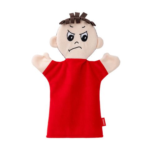 Textilní maňásek představující emoci strach, vhodný pro psychologické poradny, speciální pedagogy, učitele ve školkách a dětských skupinách a také pro domácí hraní. Navrženo ve spolupráci s dětskou psycholožkou Mgr. Bronislavou Pilarčíkovou.