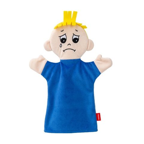 Textilní maňásek představující emoci smutek, vhodný pro psychologické poradny, speciální pedagogy, učitele ve školkách a dětských skupinách a také pro domácí hraní. Navrženo ve spolupráci s dětskou psycholožkou Mgr. Bronislavou Pilarčíkovou.