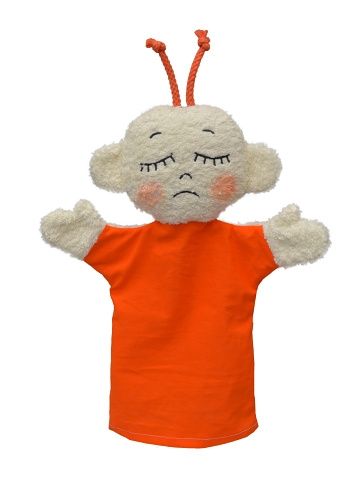 Textilní maňásek představující emoci stud, vhodný pro psychologické poradny, speciální pedagogy, učitele ve školkách a dětských skupinách a také pro domácí hraní. Navrženo ve spolupráci s dětskou psycholožkou Mgr. Bronislavou Pilarčíkovou.