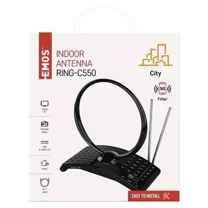 EMOS Anténa pokojová CITY RING-C550, DVB-T2, DAB, FM, filtr LTE/4G/5G