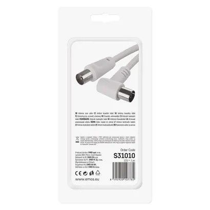 Anténní koaxiální kabel s vidlicí a zásuvkou IEC. Kabel má úhlový konektor (90°). Kabel má dvojité stínění pro redukci elektromagnetického rušení. Délka kabelu je 10 m. Koaxiální kabel je vhodný pro SAT, DVB-T, ANT, DECODER, FLAT TV a TV. Výhody produktuDvojité stínění.