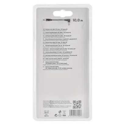 Anténní koaxiální kabel s vidlicí a zásuvkou IEC. Kabel má úhlový konektor (90°). Kabel má dvojité stínění pro redukci elektromagnetického rušení. Délka kabelu je 10 m. Koaxiální kabel je vhodný pro SAT, DVB-T, ANT, DECODER, FLAT TV a TV. Výhody produktuDvojité stínění.