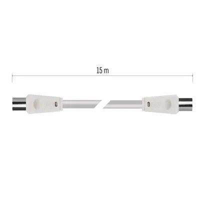 Anténní koaxiální kabel s vidlicí a zásuvkou IEC. Kabel má dvojité stínění pro redukci elektromagnetického rušení. Délka kabelu je 15 m. Koaxiální kabel je vhodný pro SAT, DVB-T, ANT, DECODER, FLAT TV a TV. Výhody produktuDvojité stínění.