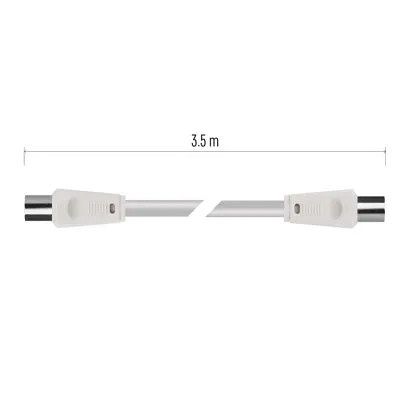 Anténní koaxiální kabel s vidlicí a zásuvkou IEC. Kabel má dvojité stínění pro redukci elektromagnetického rušení. Délka kabelu je 3,5 m. Koaxiální kabel je vhodný pro SAT, DVB-T, ANT, DECODER, FLAT TV a TV. Výhody produktuDvojité stínění.