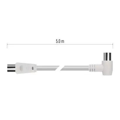Anténní koaxiální kabel s vidlicí a zásuvkou IEC. Kabel má úhlový konektor (90°). Kabel má dvojité stínění pro redukci elektromagnetického rušení. Délka kabelu je 5 m. Koaxiální kabel je vhodný pro SAT, DVB-T, ANT, DECODER, FLAT TV a TV. Výhody produktuDvojité stínění.