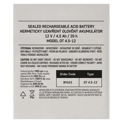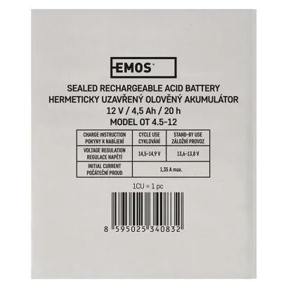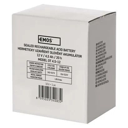 EMOS Bezúdržbový olověný akumulátor 12 V/4,5 Ah, faston 4,7 mm
