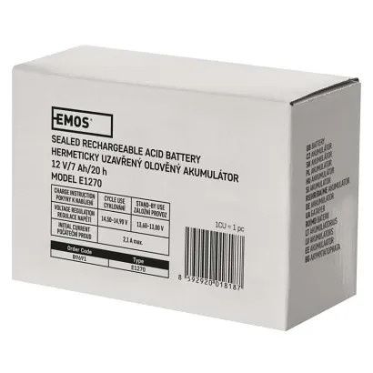 Akumulátor EMOS je vhodný jako náhradní baterie pro elektronické systémy - EZS, EPS (ústředny Jablotron a Paradox), záložní systémy výtahů, dětské vozítka apod. Bezúdržbový, ventilem řízený olověný akumulátor v provedení AGM umožňuje být používán v libovolné poloze. Optimální životnost v záložních systémech je 5 let.Nabíjení baterie musí být prováděno vhodným napájecím zdrojem nebo nabíječem, který má hodnotu nabíjecího napětí 14,4 V pro 12 V akumulátory a 7,2 V pro 6 V akumulátory. V případě, že nabíječ nebo napájecí zdroj nemá tyto parametry, tak dochází k neúplnému nabíjení a dochází k tomu, že akumulátor bude rychle spotřebován a v krajním případě zničen. V tomto případě nelze uznat reklamaci akumulátoru.