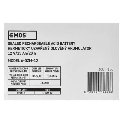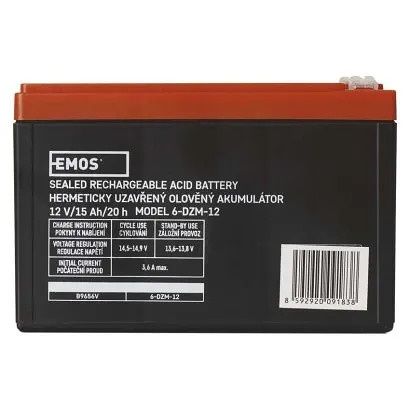 Akumulátor EMOS typ 6-DZM-12 má extra silnou mřížku článků a ta zajišťuje velmi vysokou cyklickou odolnost (okolo 800 cyklů při 50% D.O.D = hloubka vybití 50%), což tento akumulátor předurčuje pro aplikace, kde dochází k častému hlubokému vybíjení - cyklování. Je tedy ideální volbou pro pohony elektromotorů. Bezúdržbový, ventilem řízený olověný akumulátor v provedení AGM umožňuje být používán v libovolné poloze.Použití převážně pro pohon elektromotorů - elektro kola, dětská vozítka, golfové caddy, elektro skůtry, elektro koloběžky, zdravotní lůžka, dětská vozítka, elektro manipulační technika.Životnost až 4 roky pro cyklický provoz - 30% D.O.D = hloubka vybití 30%.