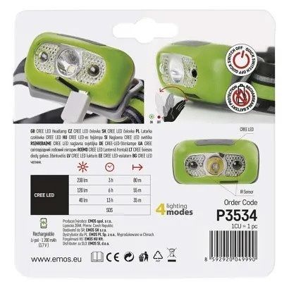 EMOS CREE LED nabíjecí čelovka P3534, 230 lm, Li-Pol 1200 mAh