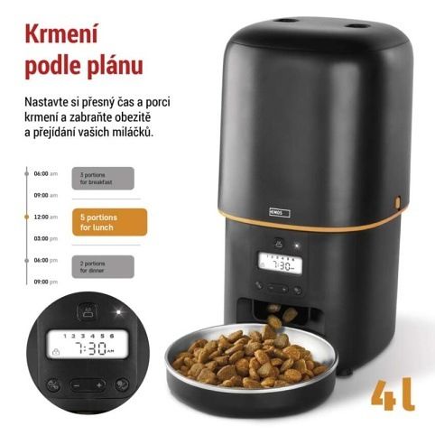 EMOS Dávkovač krmiva Pet Care, 4 l, černý