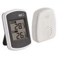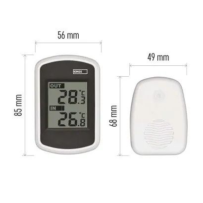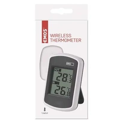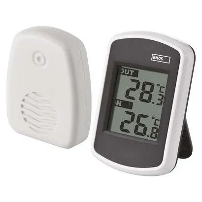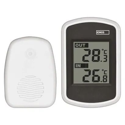 Bezdrátový teploměr se zobrazením venkovní a vnitřní teploty. Teploměr má bezdrátové čidlo s dosahem až 100 m.