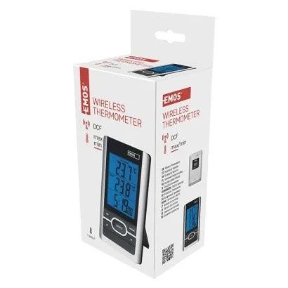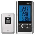 Bezdrátový teploměr s modrým podsvícením displeje. K teploměru se připojuje jedno bezdrátové čidlo s dosahem až 60 m. Teploměr má hodiny řízené DCF signálem.Výhody produktuHodiny, vnitřní a venkovní teplota, záznam max/min teploty.
