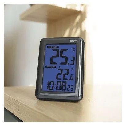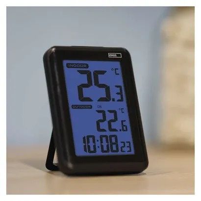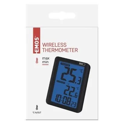 Bezdrátový teploměr se zobrazením venkovní a vnitřní teploty. Teploměr má bezdrátové čidlo s dosahem až 50 m.Výhody produktuvnitřní a venkovní teplota, záznam max/min teplotyhodiny, podsvícený displejmožnost pověsit na zeď i postavit na stůlindikace slabých baterií