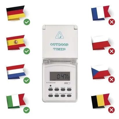 Produkty SCHUKO nejsou určeny pro použití v ČR, PL a SK. Jsou určeny pro použití v zemích se systémem SCHUKO.Tato digitální spínací zásuvka SCHUKO, nebo-li časovač, je ideální pro nastavení zapnutí a vypnutí jakýchkoliv elektrických spotřebičů. Je spolehlivý i ve Vaší nepřítomnosti.Produkty SCHUKO nejsou určeny pro použití v ČR, PL a SK. Jsou určeny pro použití v zemích se systémem SCHUKO.Tato digitální spínací zásuvka SCHUKO, nebo-li časovač, je ideální pro nastavení zapnutí a vypnutí jakýchkoliv elektrických spotřebičů. Je spolehlivý i ve Vaší nepřítomnosti.Výhody produktuIP44, ruční přepnutí letního času, 16 kombinací dnů nebo blokůIP44, ruční přepnutí letního času, 16 kombinací dnů nebo bloků