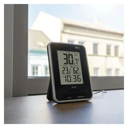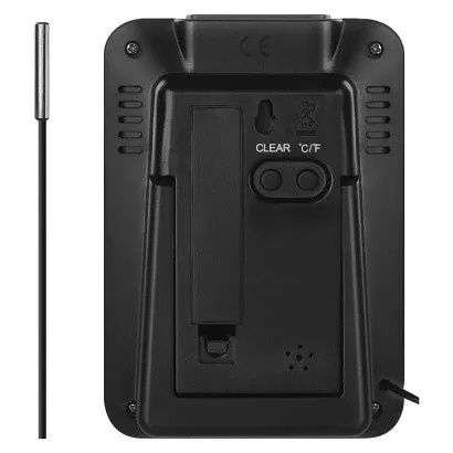 Drátový teploměr se zobrazením venkovní teploty a vnitřní teploty a vlhkosti. Teploměr má drátovou sondu v délce 2,9 m.Výhody produktukontinuální zobrazení maximální a minimální teploty a vlhkostiměření a záznam hodnoty tlakuměří vnitřní a venkovní teplotu a vlhkostmožnost pověsit na zeď i postavit na stůlindikace slabých baterií