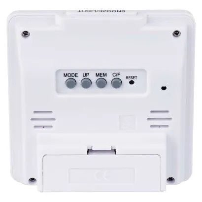 Teploměr v bílé barvě s hodinami řízenými Quarz krystalem. Teploměr má podsvícení displeje, zobrazuje vnitřní teplotu a vlhkost, hodiny, datum a má budík.Výhody produktubudík s funkcí snooze, podsvícený displej