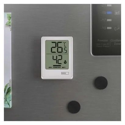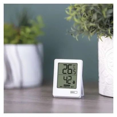 pověšení na zeď•Díky magnetu lze teploměr upevnit na jakýkoliv kovový povrch•Možnost nastavení teploty na °C/°F•Napájení pomocí 1× CR2032 (součástí balení)•Kompaktní rozměr a velmi přehledný displej•Minimalistický design, který se hodí do jakéhokoliv interiéruDigitální teploměr, který zaznamenává vnitřní teplotu a vlhkost.Výhody produktuMagnet pro uchycení na zadní straně, možnost pověsit na zeď i postavit na stůl. Zobrazuje ikonu komfortu.