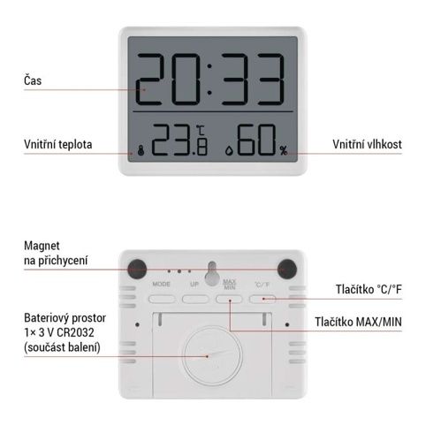 - napájení stanice: 1× 3 V CR2032 (součástí balení)