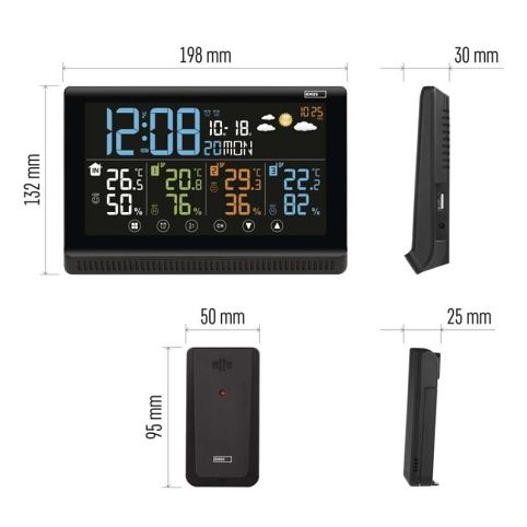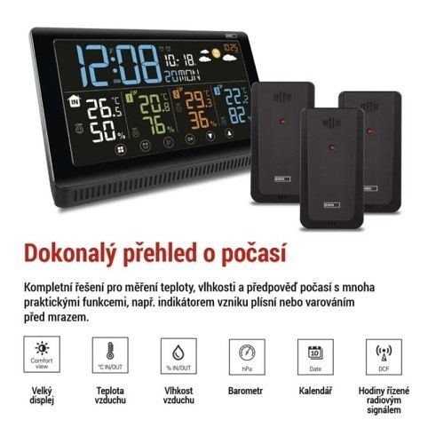 Díky této meteostanici budete vždy s jistotou vědět, na jaké počasí se připravit a nic vás nepřekvapí.Výhody produktuSoučasné zobrazení údajů ze 3 čidel (součástí balení).USB výstup pro nabíjení zařízení.