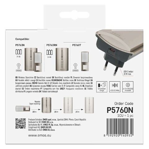 EMOS Domovní bezdrátový zvonek P5760N do zásuvky, s možností prodloužení signálu