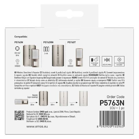 EMOS Domovní bezdrátový zvonek P5763N na 3× AA, s možností prodloužení signálu
