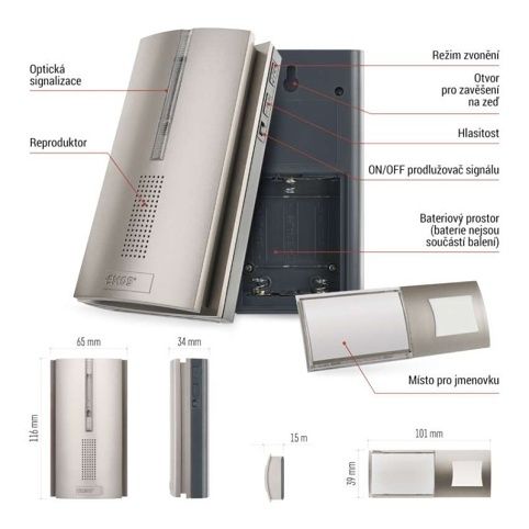 Spolehlivý zvonek s funkcí prodlužovače signálu (repeater), který se hodí nejen k domu, ale i bytu, nebo do kanceláře. Velkou předností tohoto zvonku je jeho bezdrátové provedení a možností prodloužení dosahu tlačítka zvonku.Výhody produktuINTEGROVANÝ OPAKOVAČ SIGNÁLU; možnost kombinovat mezi sebou jednotlivé sety, a nejen na plošné pokrytí, ale hlavně i maximální vzdáleností pokrytí.