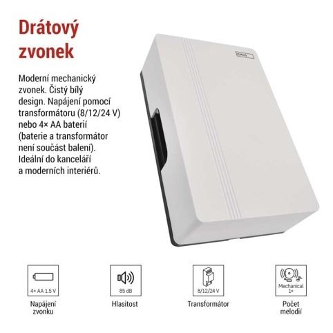 Spolehlivý drátový zvonek, který se hodí nejen do domu, ale i do bytu nebo kanceláře.