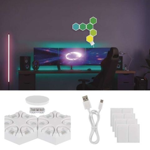 EMOS GoSmart LED stolní lampa Hexagon bílá, 6 dílů, RGBIC stmívatelná, WiFi