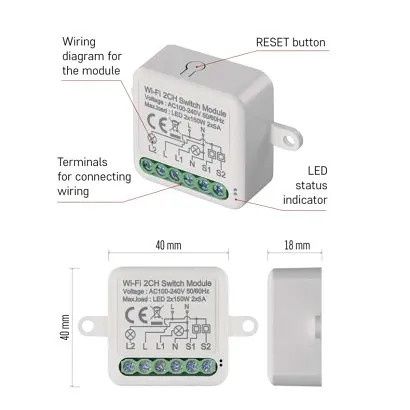 EMOS GoSmart modul spínací IP-2102SW, Wi-Fi, 2-kanálový