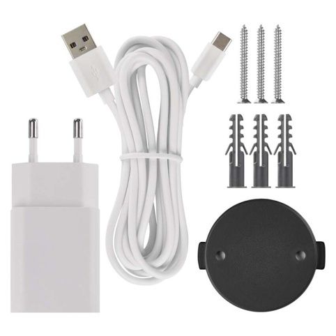 - obsah balení: 1× kamera, 1× napájecí adaptér, 1× USB kabel, 1× držák, 1× adhesivní páska, 1× šroubky, 1× manuál