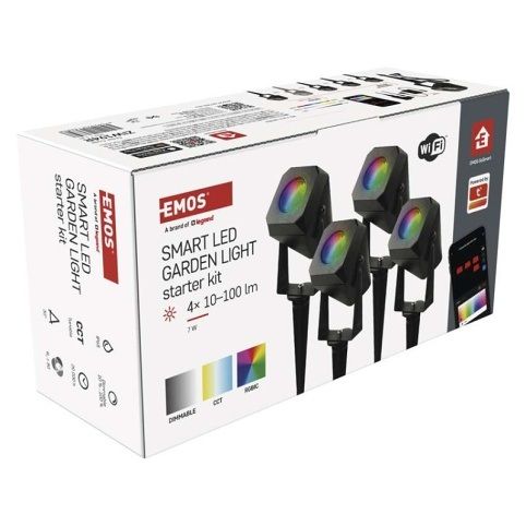 EMOS GoSmart venkovní LED bodové světlo, startovací sada, 4 díly, 7 W, RGBIC stmívatelné,