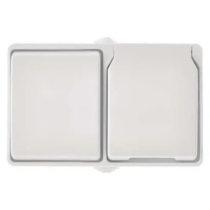 Kombinace přepínače střídavého a zásuvky jednonásobné, voděodolné IP44. Horizontální montáž.Výhody produktuZásuvka s dětskými clonkami.
