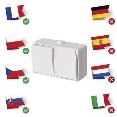 - provedení: 2 nás. voděodolné - 1× zásuvka + 1× přepínač střídavý